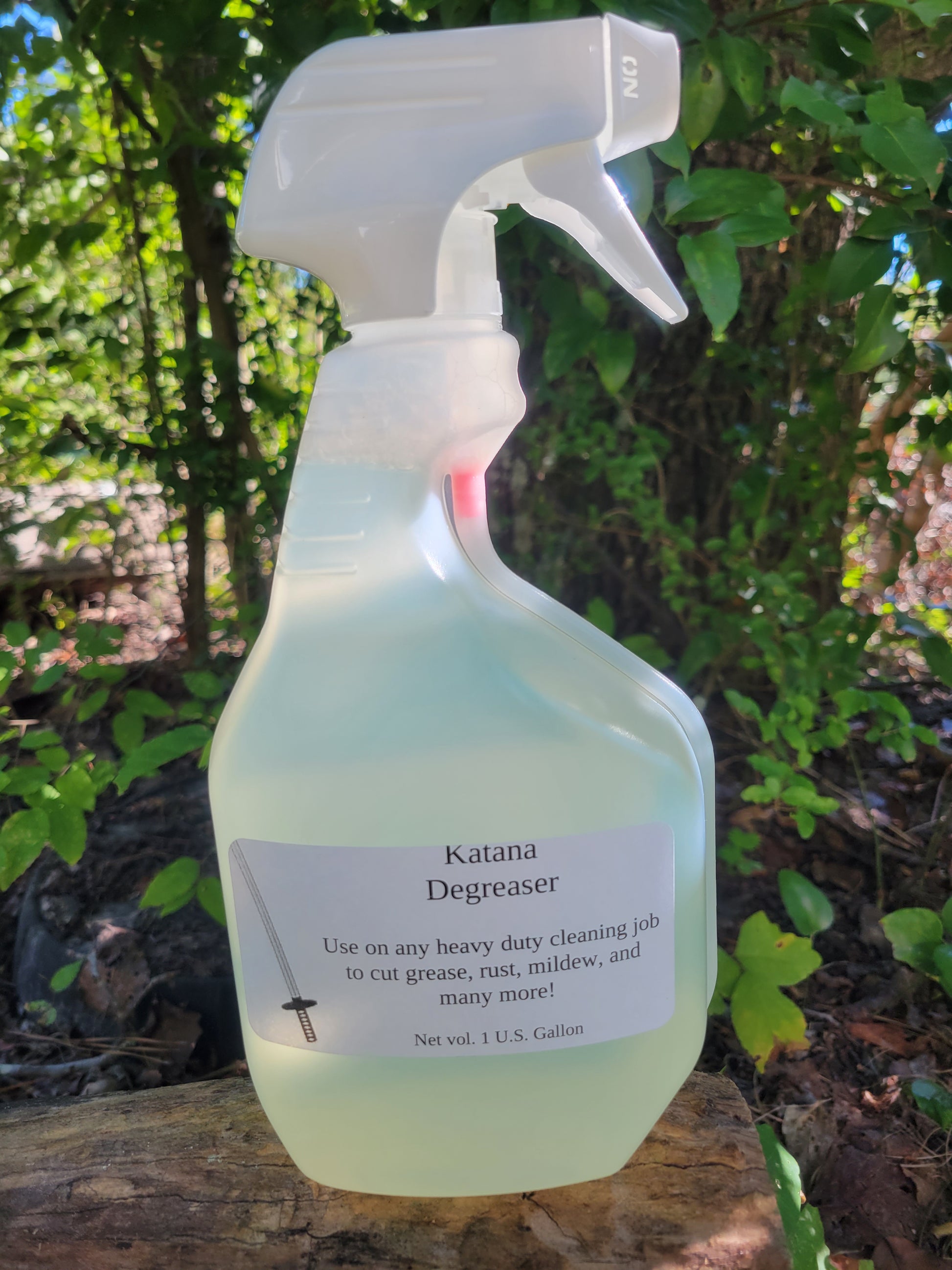 Katana is an exceptional degreaser and heavy duty cleaner. You can use it on any heavy cleaning job to remove grease, mildew, set in stains, oils, to clean concrete and many more! It is made from environmentally friendly components to limit its impact while preserving its efficacy. It is very powerful so please read the warning below carefully and follow all instructions listed.